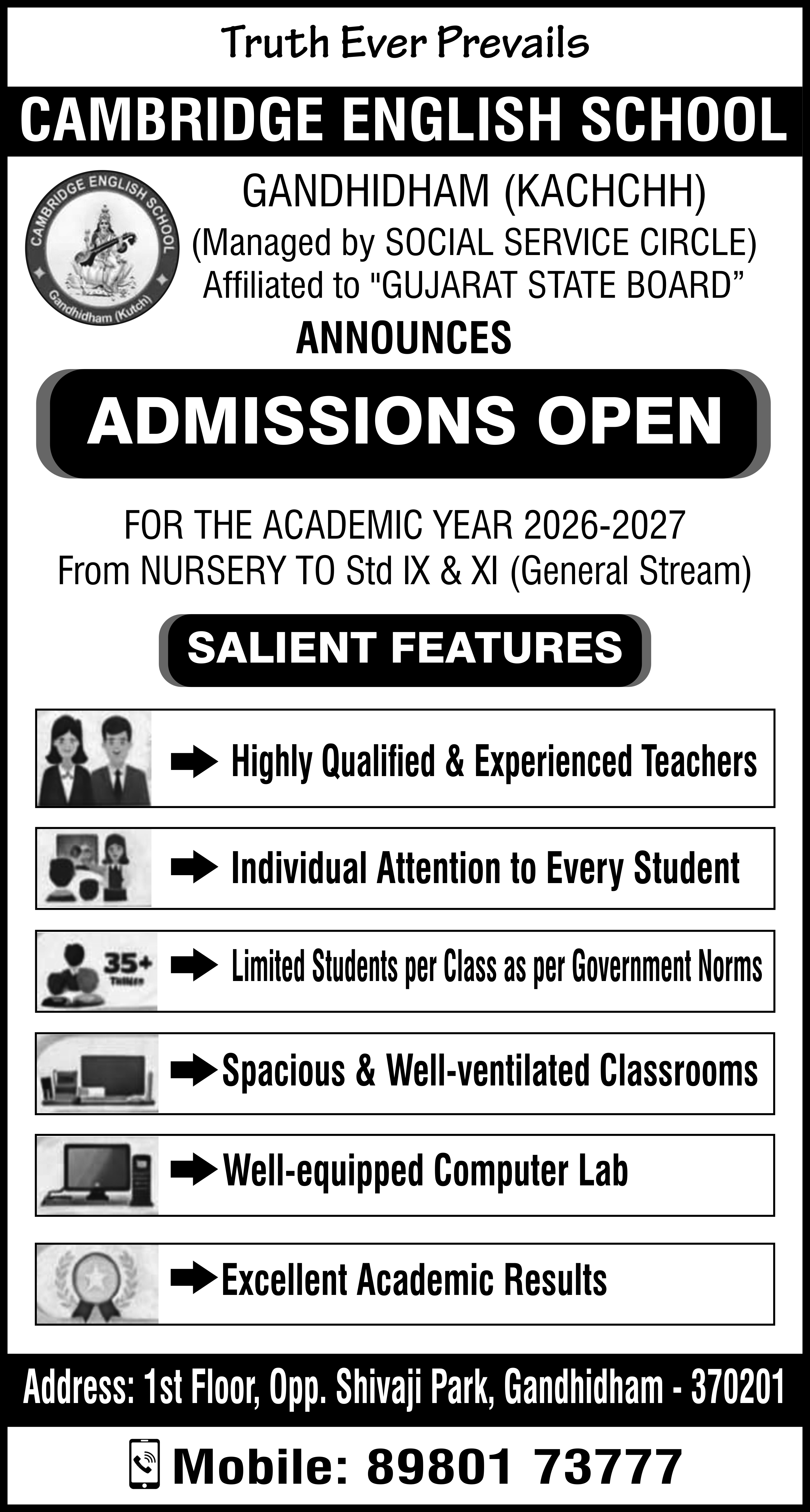 ગાંધીધામની કેમ્બ્રિજ ઇંગ્લિશ સ્કૂલ દ્વારા આગામી શૈ...