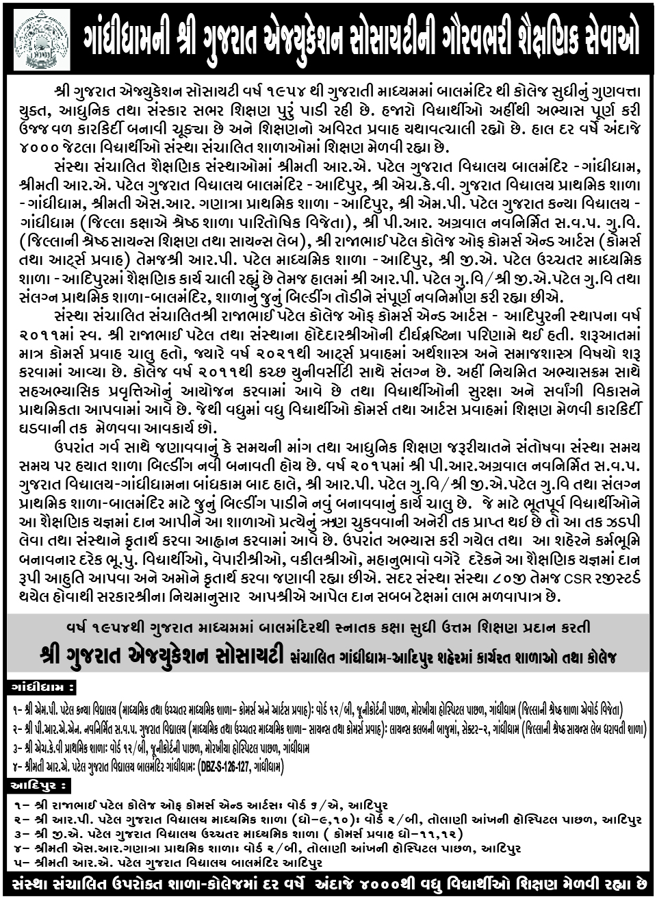 આદિપુરમાં ગુણવત્તાસભર શિક્ષણનો પર્યાય એટલે ગુરૂનાન...